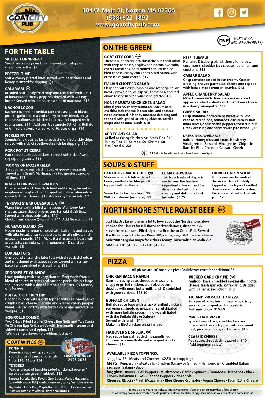 Goat City Pub is not responsible for online orders incorrectly placed for another Goat City location pickup.